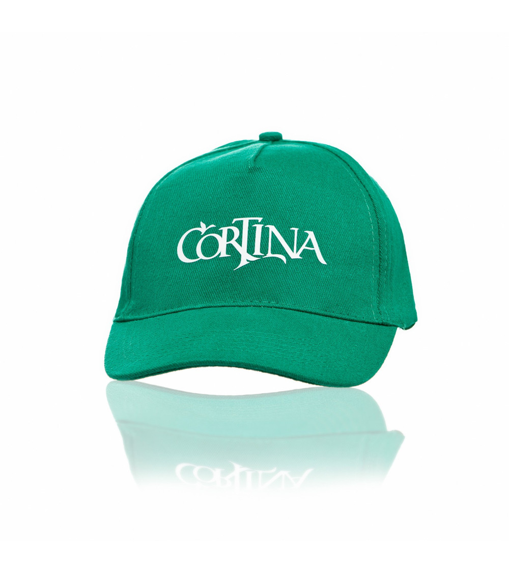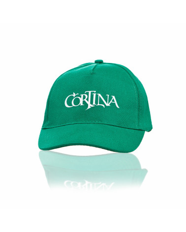 Gorra “Cortina” de 5 paneles, 100% algodón. Color verde y cierre de velcro para un perfecto ajuste.